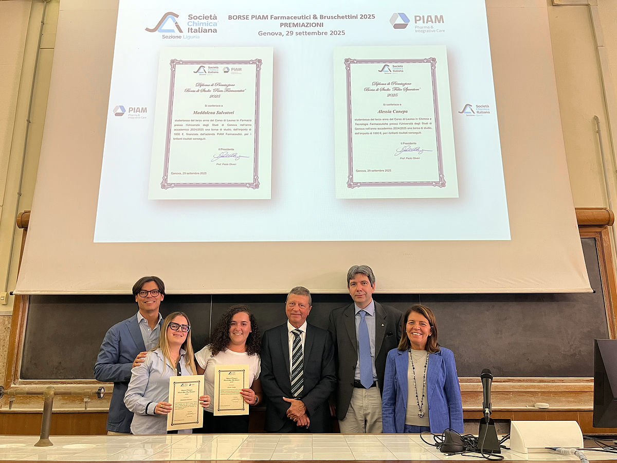 La Sezione Liguria della Società Chimica Italiana e PIAM Farmaceutici S.p.a. mettono a concorso n. 1 borsa di studio, dell’importo di 1.000 €, intitolata Borsa di Studio “PIAM Farmaceutici”, riservata agli studenti dell’Università degli Studi di Genova iscritti, nell’anno accademico 2024/2025, per la prima volta al terzo anno del Corso di Laurea Magistrale a ciclo unico in Farmacia.
